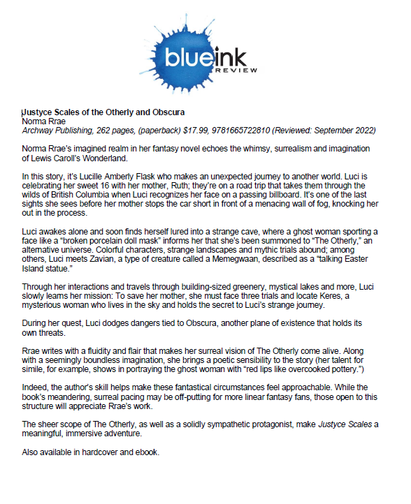 I’ve included my first professional review for Justyce Scales of the Otherly and Obscura, my book is available on most ordering sites but there are also links at the bottom of the page ๐Ÿ™‚