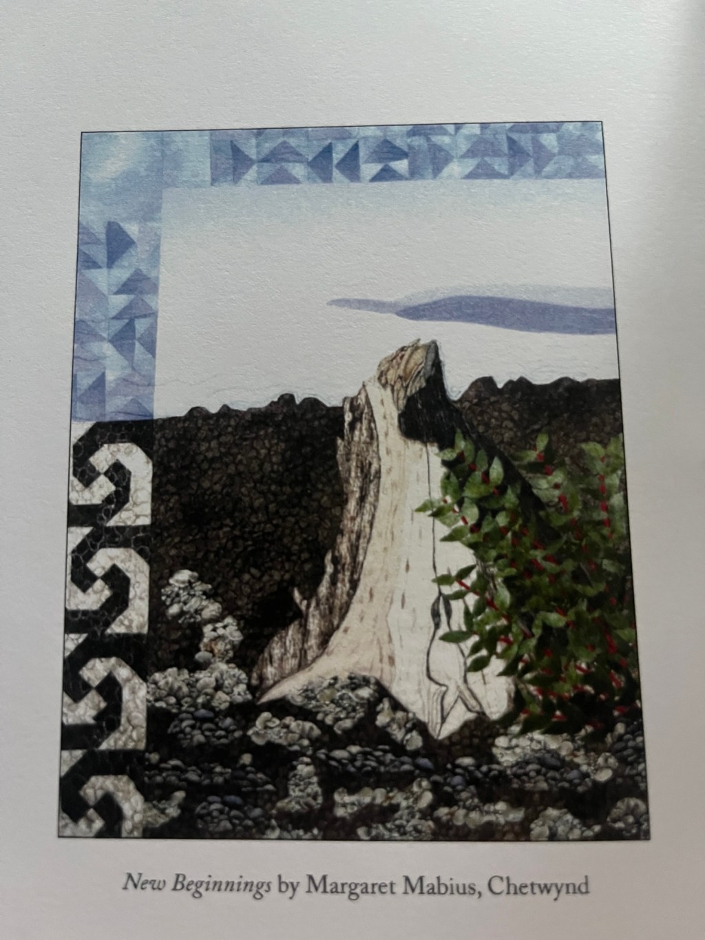 this poem is called New Beginnings, which is the same name as the quilt work shown in the picture (which also won an award in the art show) but I won an ekphrastic honourable mention award and stood in front of my first crowd of strangers since I was twelve or thirteen, or whatever it was when i read that Remembrance poem in grade school and read it to the entire school in the gymnasium *gag* and I still- *gag* because I’m a writer, not a reader, not a public speaker LOL but I do these things.