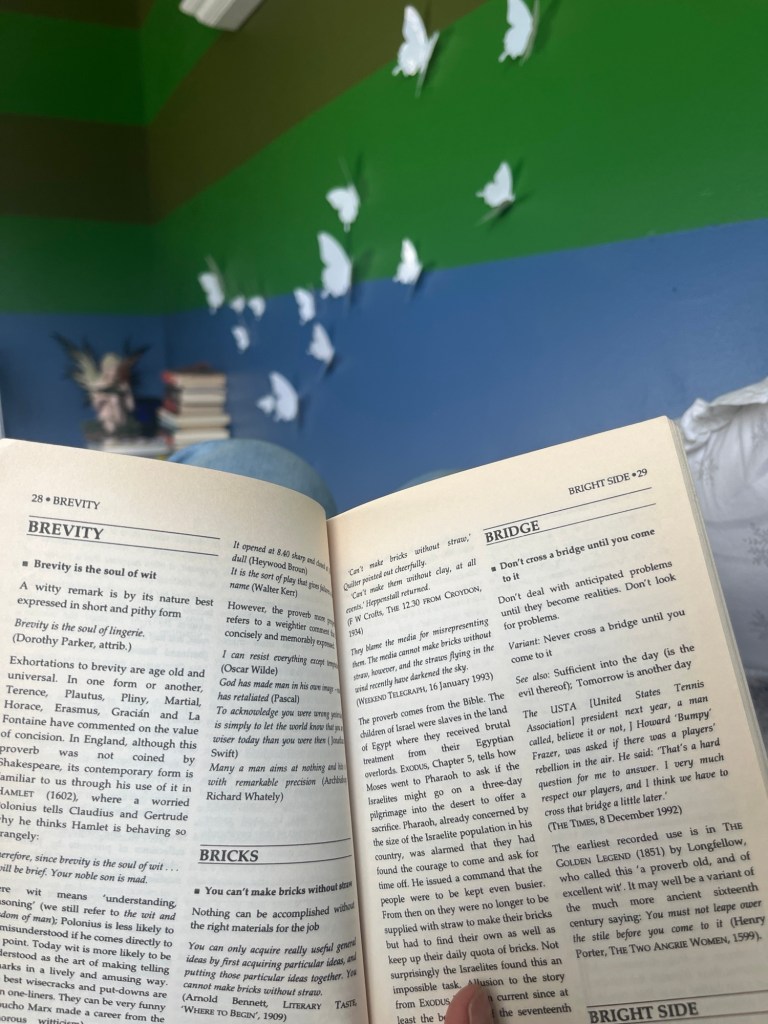 I learn cliches, then I realize- what’s the difference between a cliche and a proverb?! Some are so engrained in our English language it’s almost more dumb of me to not say the cliche/ proverb or to not understand! I’ve several times had to ask the meaning, it makes no sense! My brain screams.